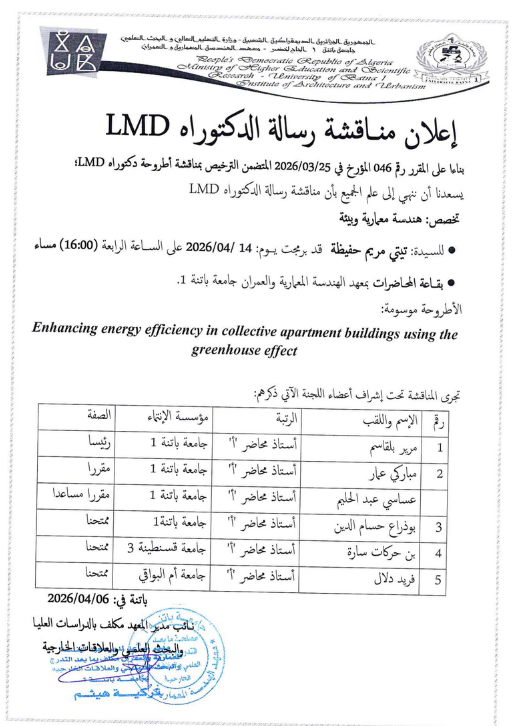 إعلان هام لطلبة معهد الهندسة المعمارية والعمران